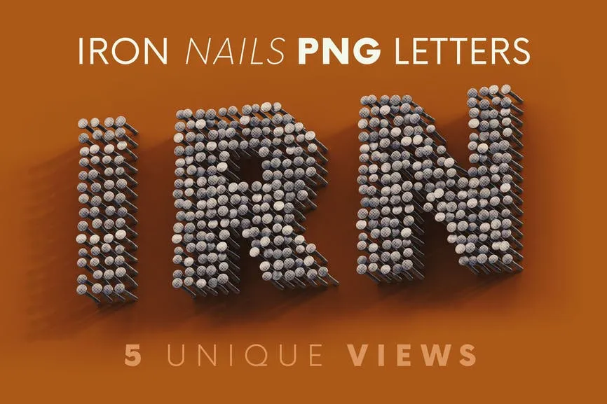 Hi-res & realistic 3D creative, rough & construction iron nails lettering renders (3000×3000 pix – but letter size is little bit smaller). Great for your headers, posters, advertisments – any web or print projects.