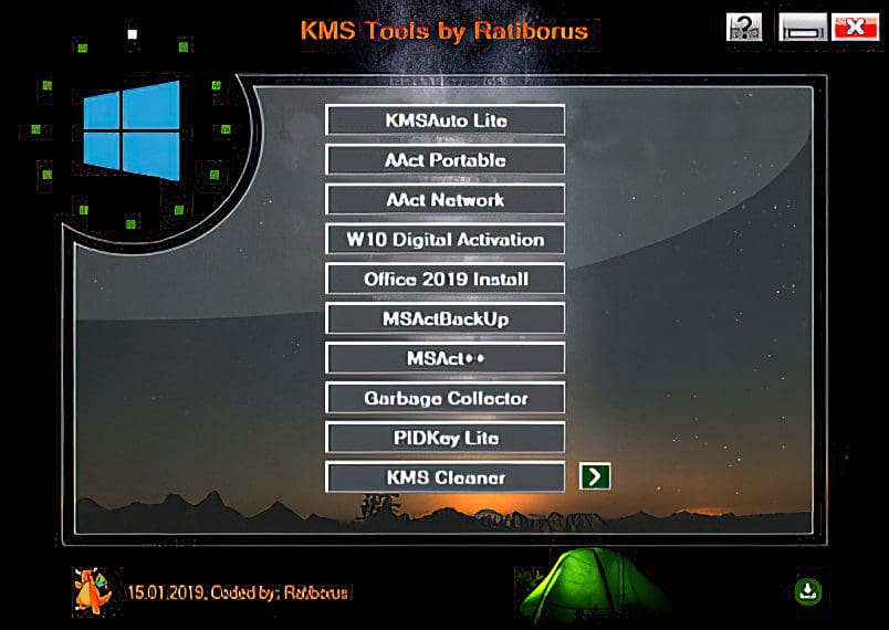 All-in-one collection of activators from Ratiborus for Windows XP, Vista, 7, 8, 8.1, 10, Server 2008, 2008 R2, 2012, 2012 R2, Office 2010/2013/2016/2019.