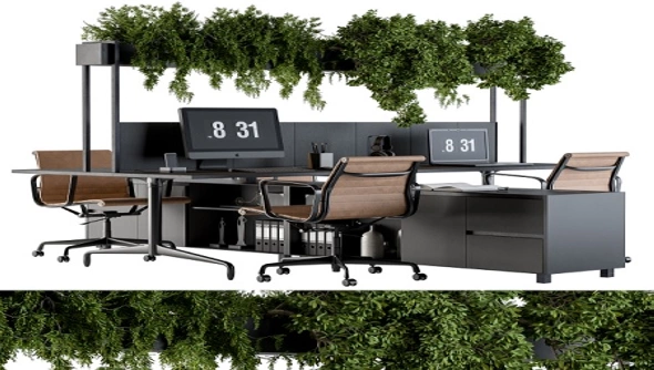 Modern Workplace set with decor. Sk_1