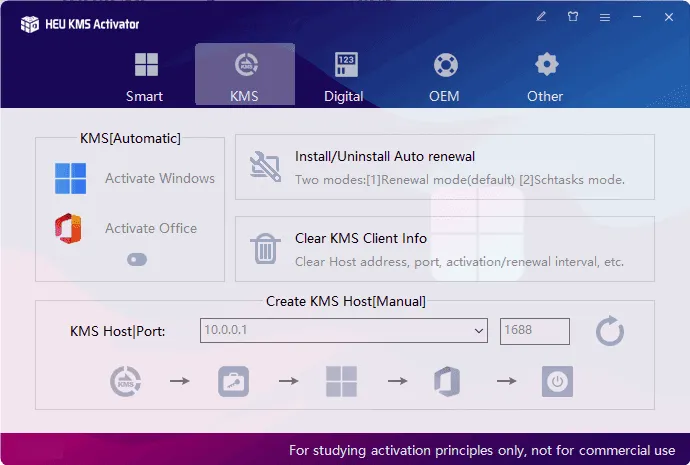 HEU KMS Activator هو برنامج تنشيط Windows و Office سهل الاستخدام يمكنه تنشيط Windows 10 و 11 و MS Office 2021 بنقرة واحدة.