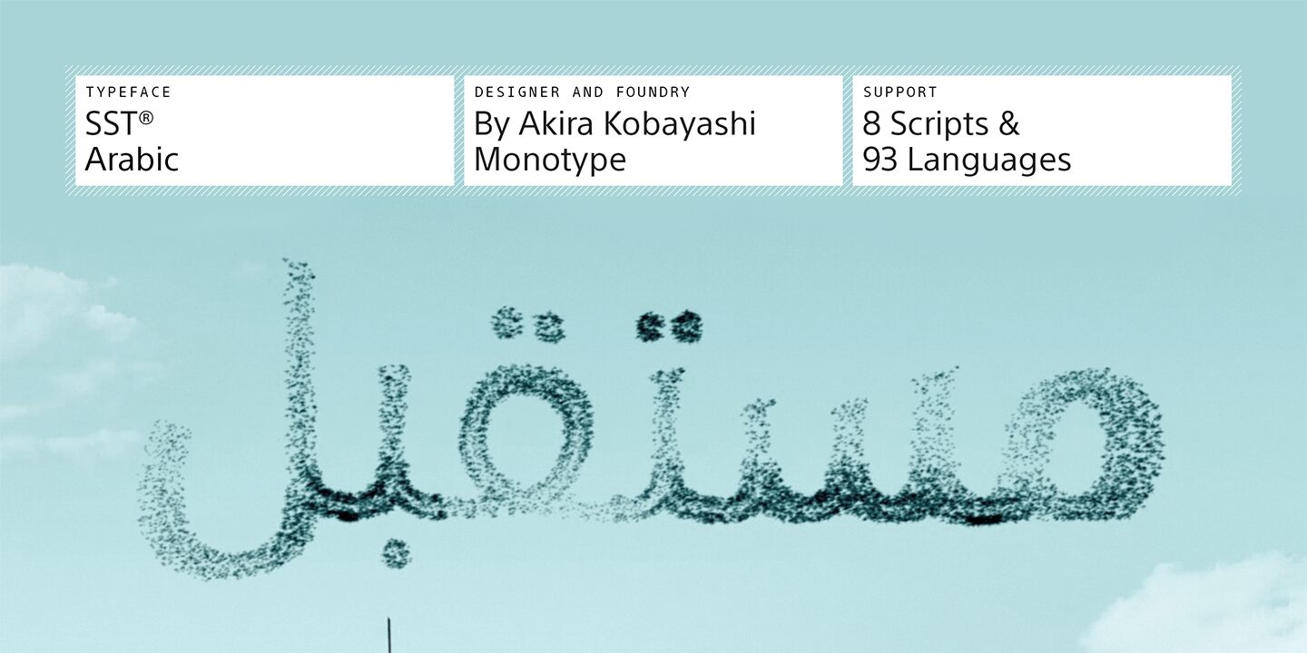 خط إس إس تي عربي (SST Arabic) هو خط عربي صممه نديم صفر ونشره MTI (Monotype Imaging)، وهو متاح على موقع MyFonts. يتميز بتصميم حديث يجمع بين الأناقة العربية التقليدية والوضوح العصري، مما يجعله مناسبًا لمجموعة واسعة من التطبيقات. يُعد مثاليًا للعناوين، النصوص، الشعارات، والتصميمات الجرافيكية التي تتطلب مظهرًا احترافيًا ومتناسقًا.