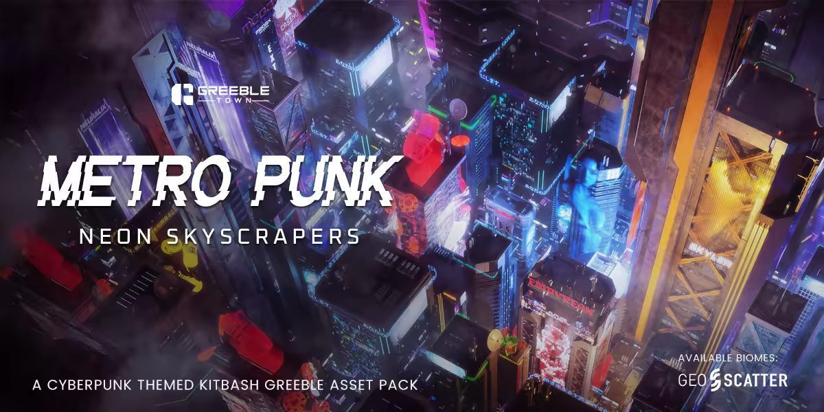 Blender Market – Metropunk Neon Skyscrapers – Cyberpunk Kitbash Greeble Assets